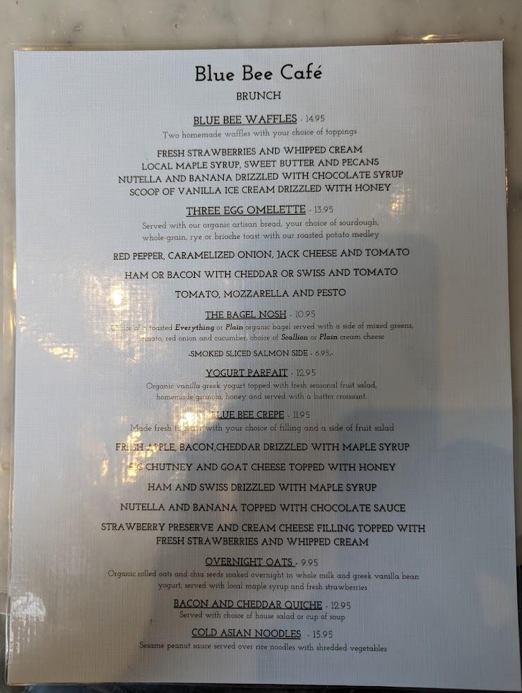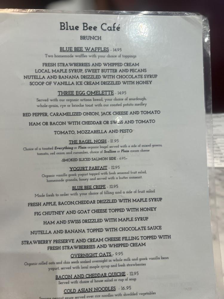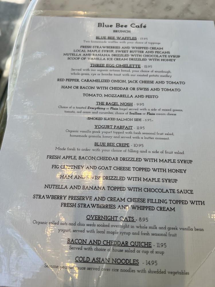 The menu at Blue Bee Cafe offers a variety of options catering to different tastes. From fresh salads like the Mexican Salad to hearty breakfast dishes, guests are spoiled for choice. Signature dishes include the Chicken Salad Sandwich and the decadent Bacon and Cheddar Quiche. Soups and daily specials, such as loaded potato soup, provide comfort food in every season.